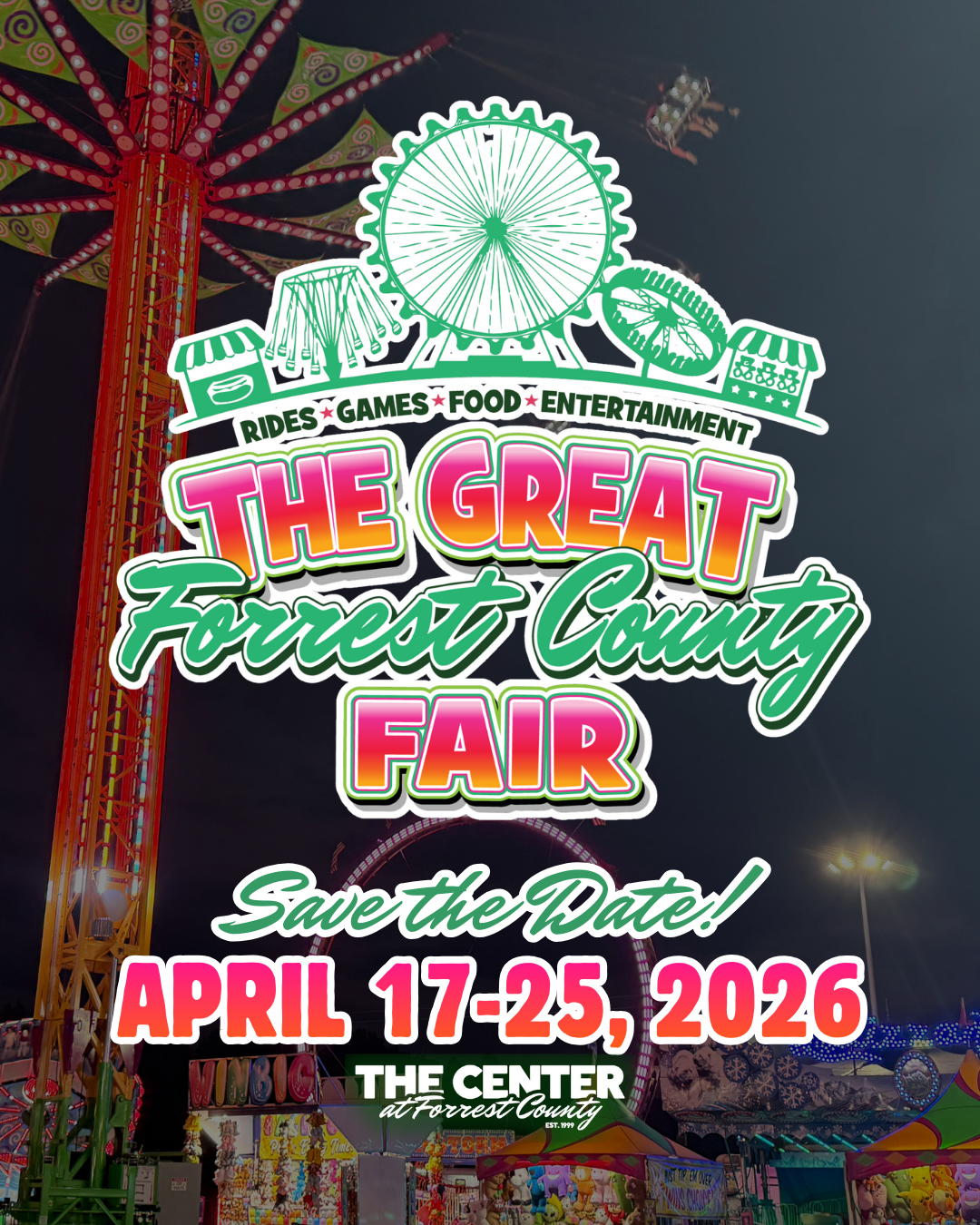 The Center at Forrest CountyIt's official! Mark your calendars for APRIL 17-25, 2026! North American Midway Entertainment and The Great Forrest County Fair returns to The Center at Forrest County for all the fair […]