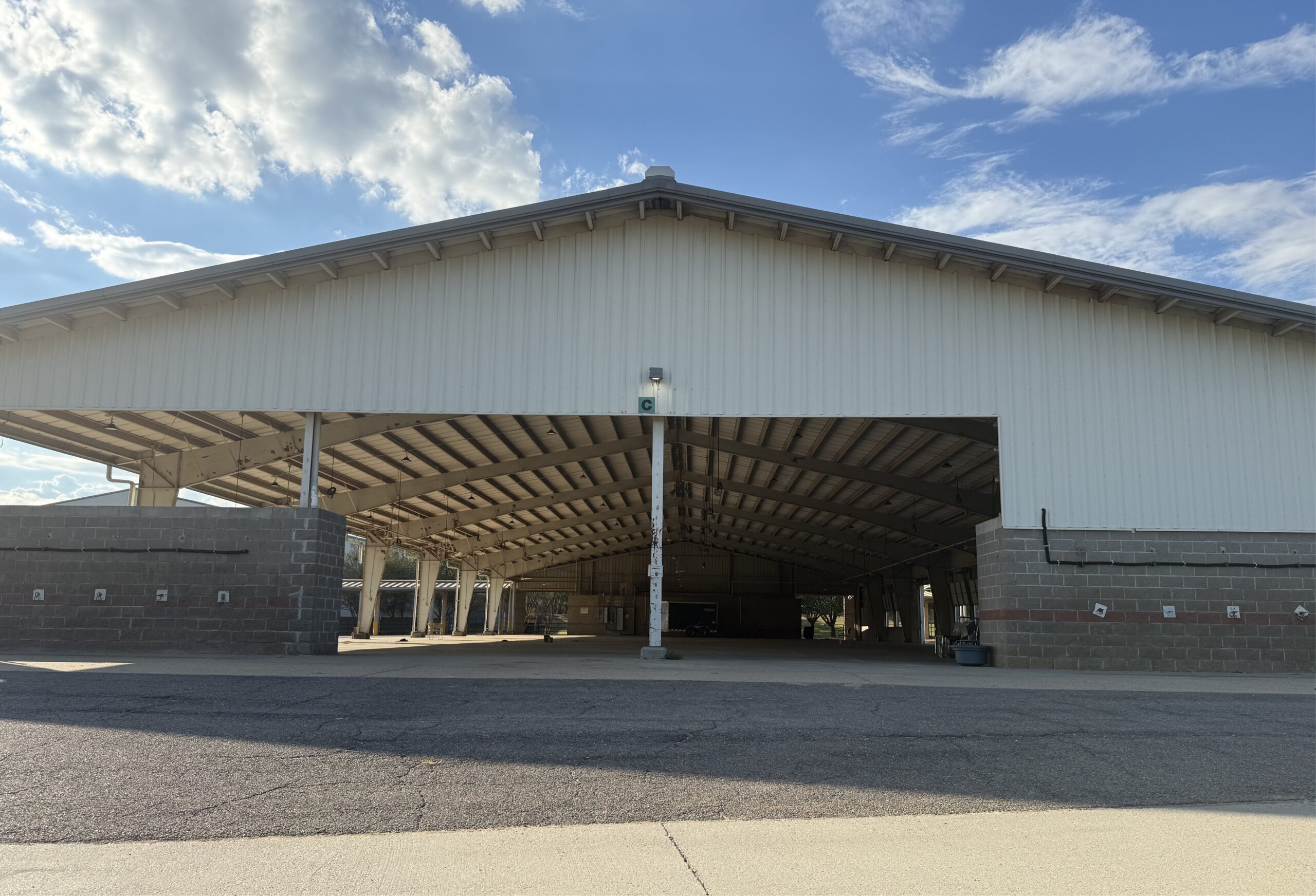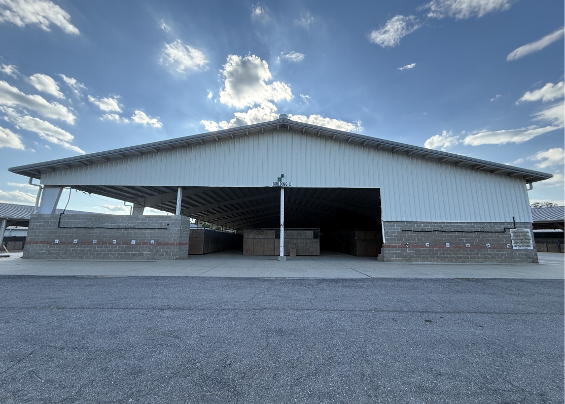 Barns C and D are versatile, concrete-floored buildings ideal for livestock shows, equestrian events, or community gatherings. Each offers a large, open floor plan with capacity for stalls or cattle ties, along with modern amenities to support both participants and spectators.