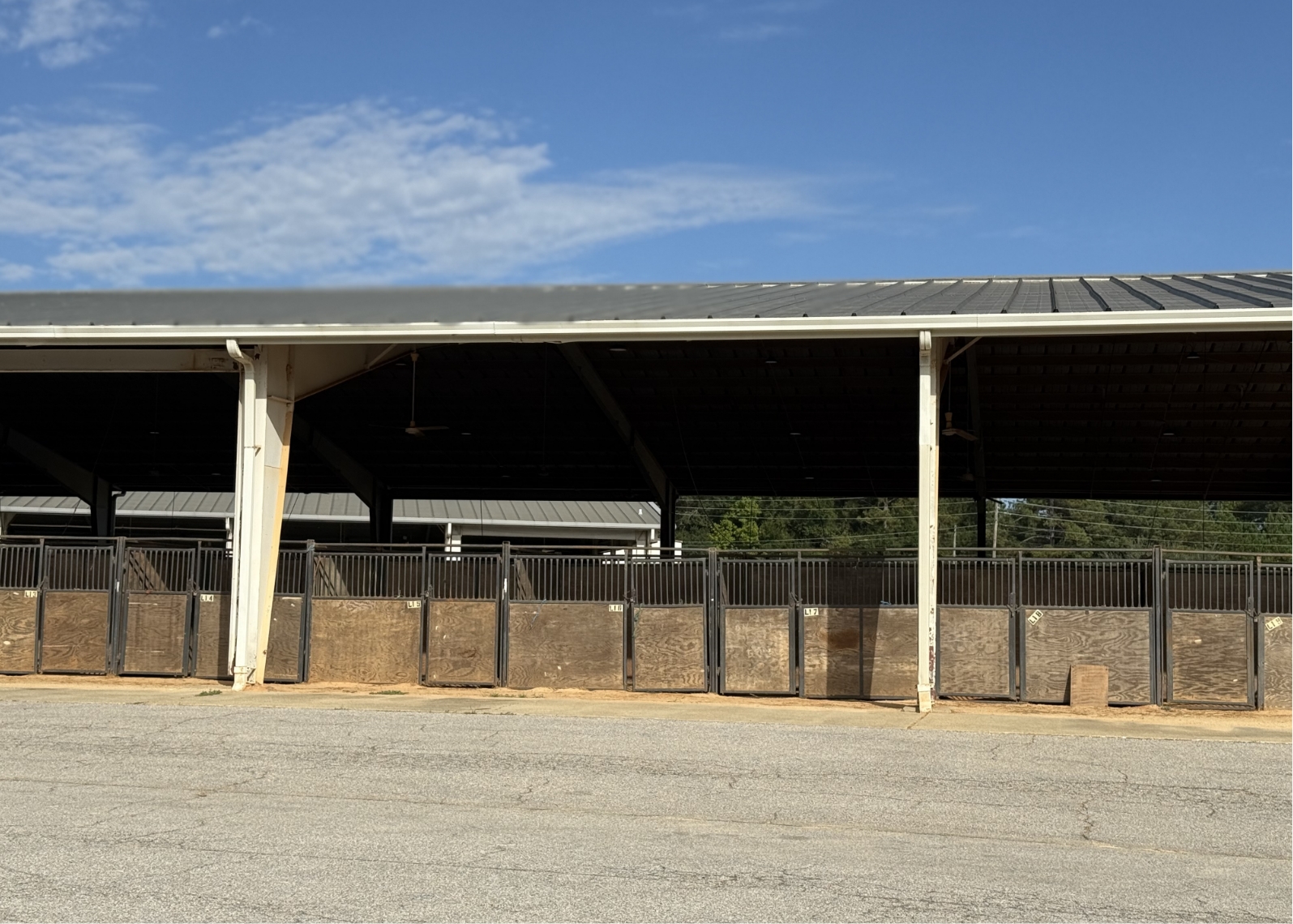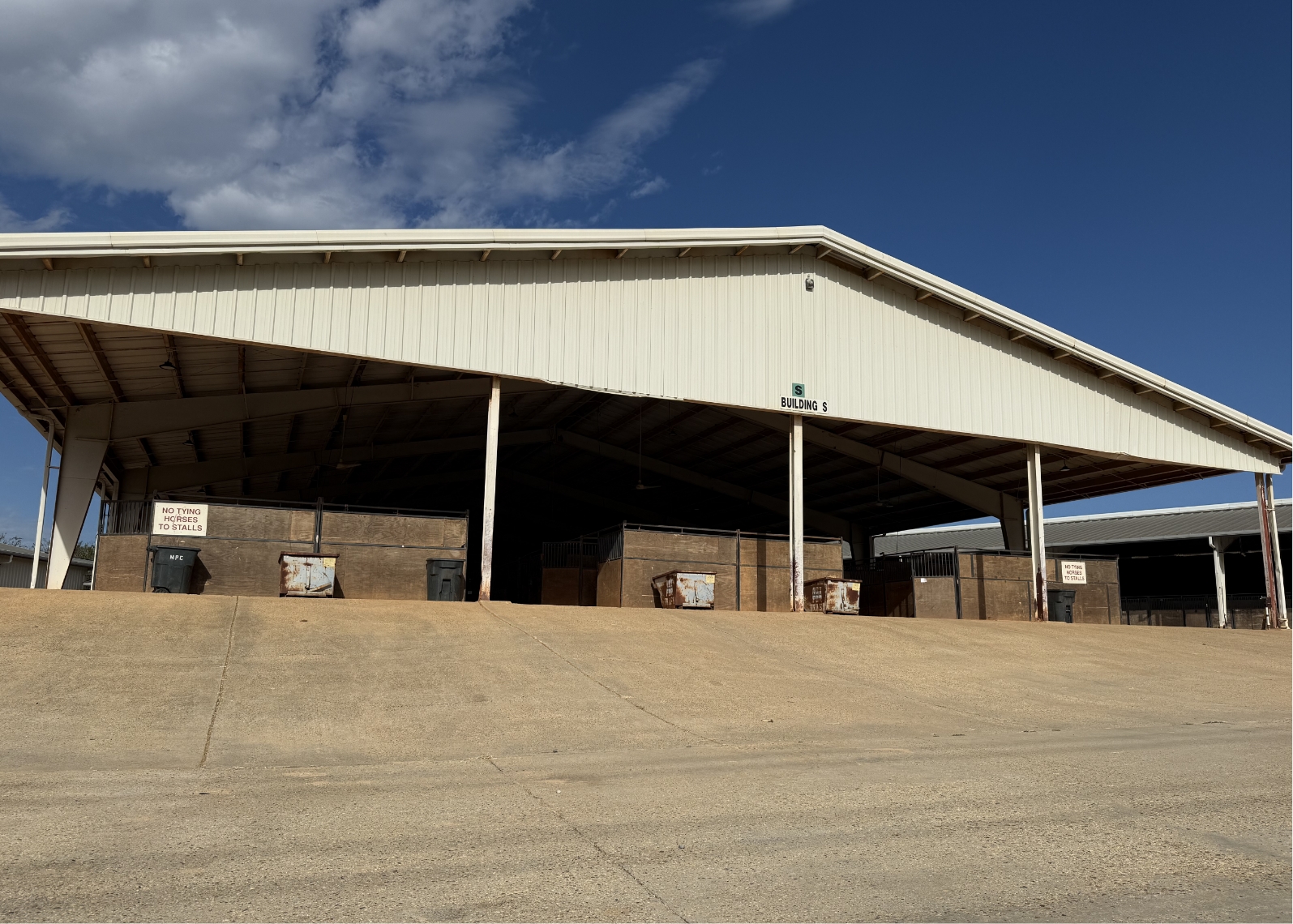 Barns S and L feature permanent dirt-floor horse stalls, ideal for equestrian activities. These buildings offer reliable and functional spaces for horse housing and related events, featuring modern amenities for both animals and participants.